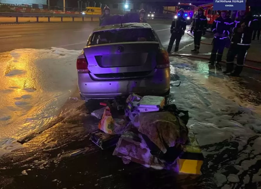 Нарушитель ПДД на горящем автомобиле: в Киеве виновник ДТП пытался скрыться с места аварии