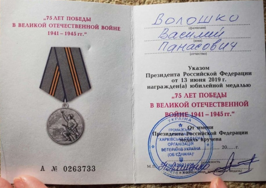 Медали были получены Харьковской организацией ветеранов Украины. Их передали в Днепропетровскую область. Василий Волошко, 95-летний ветеран Второй Мировой войны, также получил медаль. Семья мужа возмутилась и не стала передавать ему награду. Близкие объяснили, что он сейчас болеет и это может негативно повлиять на состояние его здоровья.