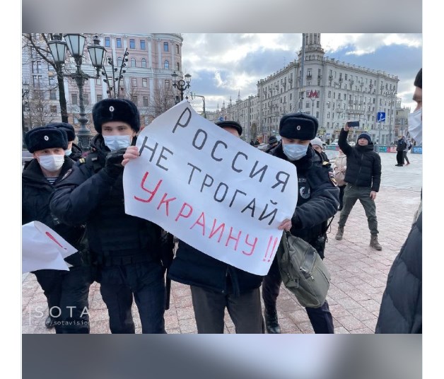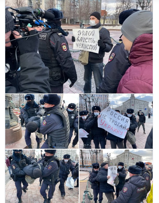 С плакатами были Лев Пономарев, Михаил Кригер, Юрий Самодуров. Одиночные пикеты против войны с Украиной быстро прекратили. Участников доставили в полицейские участки.