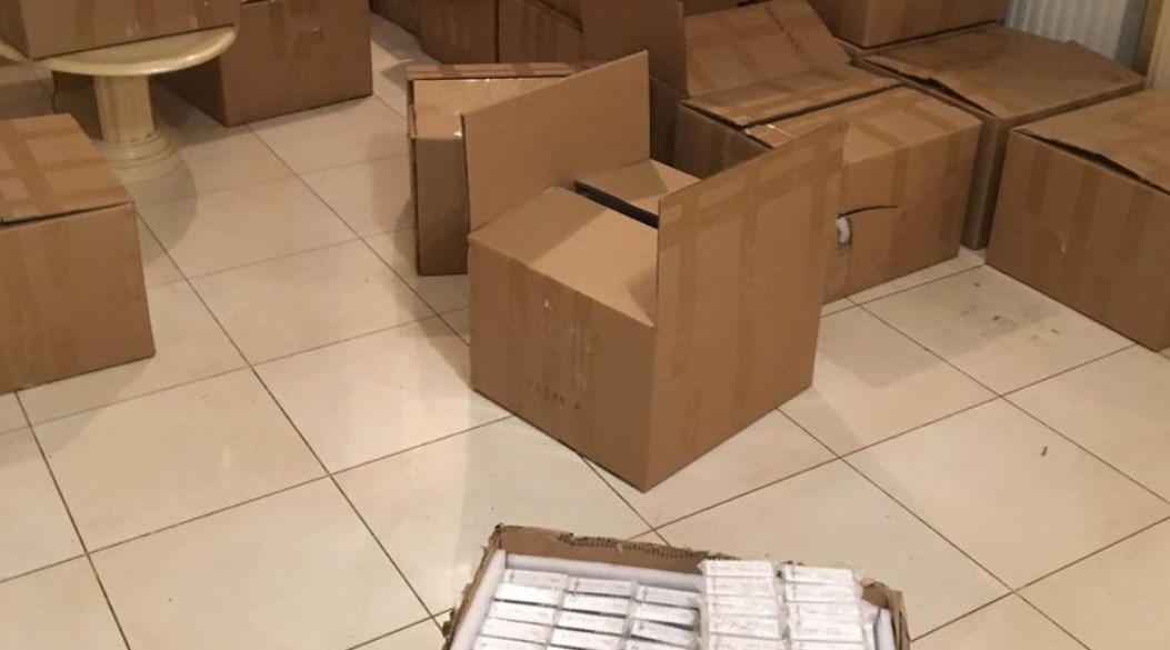 В общем зафиксировано почти 2 тонны готовой продукции. Они были в упаковках для фасовки товара и этикетки. Изъяли и соответствующую технику.