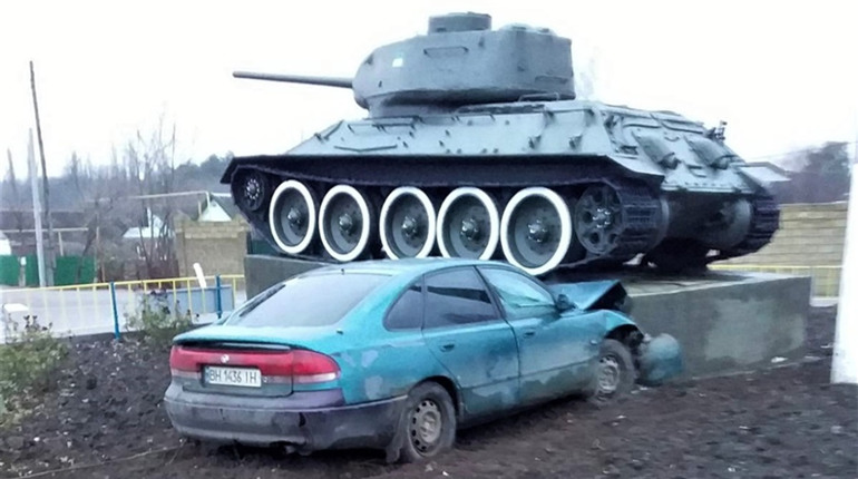 В пятницу ночью, 15 октября, водитель въехал в бетонный постамент военного мемориала с танком T-34-85 на улице Атамана Головатого в Беляевке Одесской области. От полученных травм мужчина погиб.