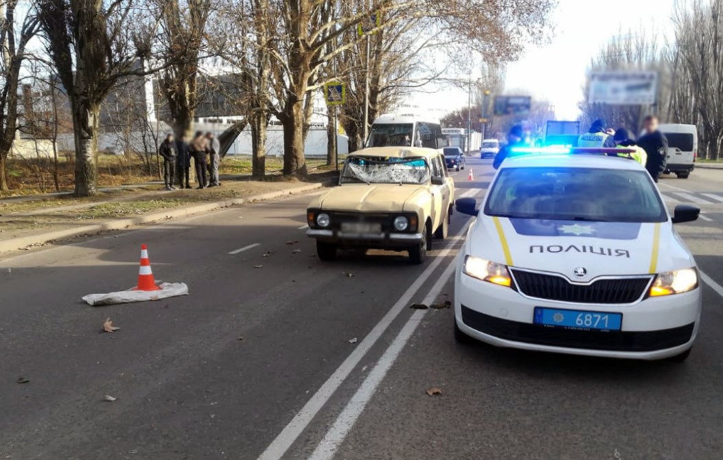 Полиция Херсонской области устанавливает обстоятельства нарушения ПДД. Водитель автомобиля ИЖ-2125 "Комби" на нерегулируемом пешеходном переходе сбил 67-летнего мужчину.