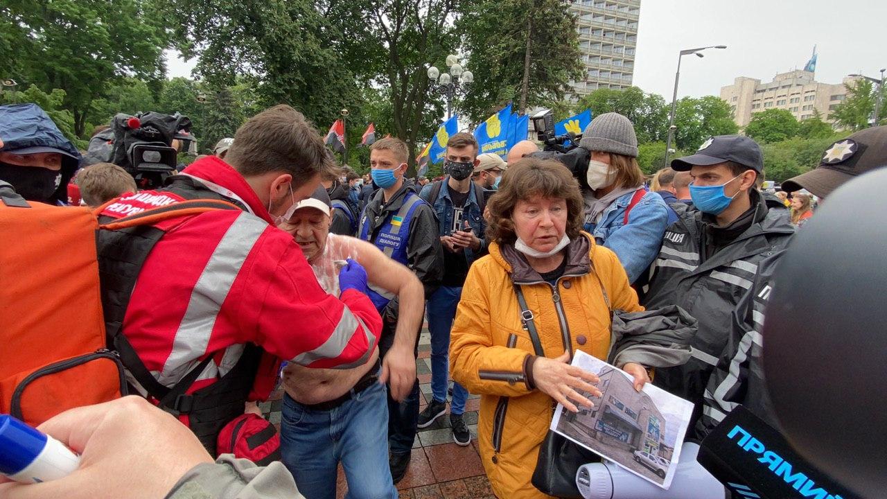 Об этом с места событий сообщила журналистка ASPI news. Сообщается, что Ляшенко пришел вместе со своими родными на митинг против Арсена Авакова из-за рейдерского захвата.