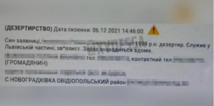 Жительница Одесской области сообщила правоохранителям, что ее сын находится дома. В это время он должен был проходить военную службу во Львовской части.