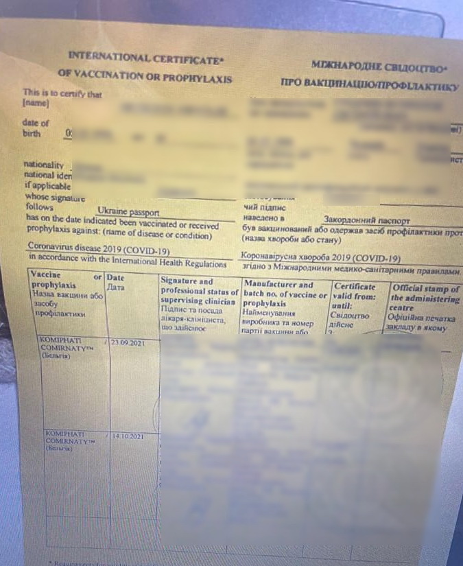 В Сумской области разоблачили продажу поддельных международных свидетельств о вакцинации от COVID-19 (Фото)