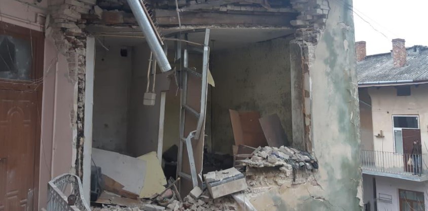 Взрыв во Львове разрушил стену дома, два человека пострадали (Фото)