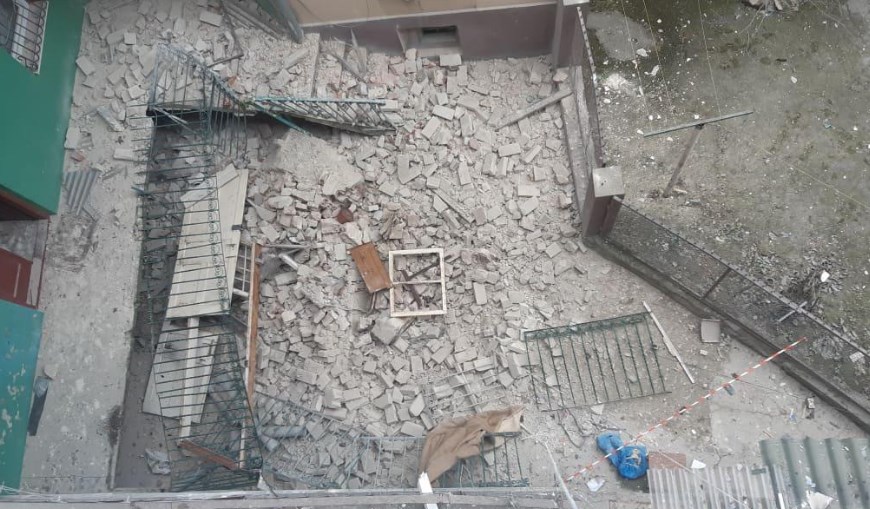 Взрыв во Львове зафиксировали сотрудники ГСЧС. Разрушена несущая стена на третьем этаже жилого дома и повреждено перекрытие над квартирой.