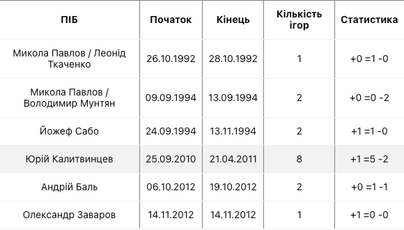 - А единственным тренером без побед в сборной Украины является Виктор Прокопенко (1 ничья и 2 поражения).