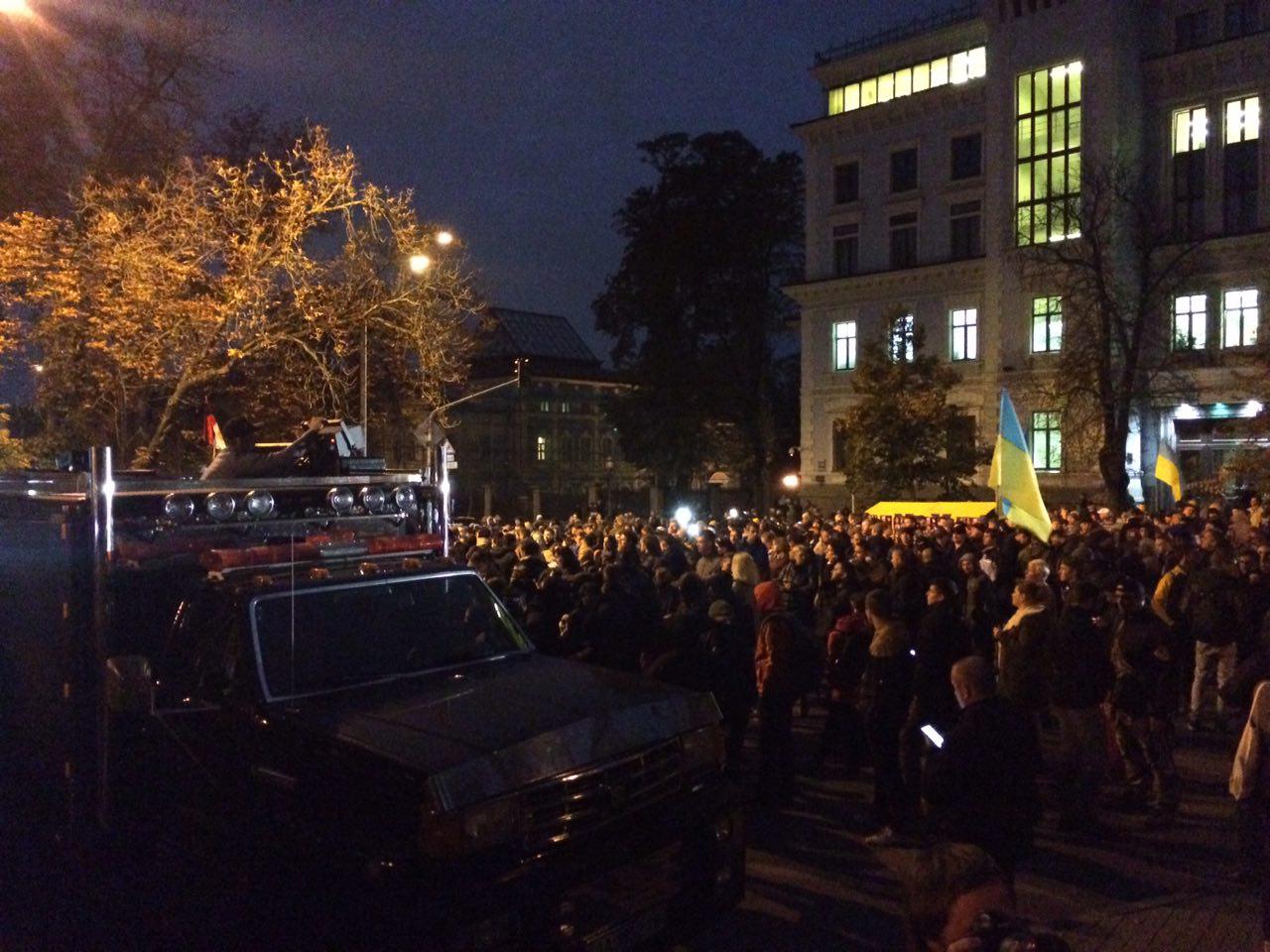 "Пока мы здесь стоим, где-то в Украине убивают еще одного активиста", - заявили организаторы.