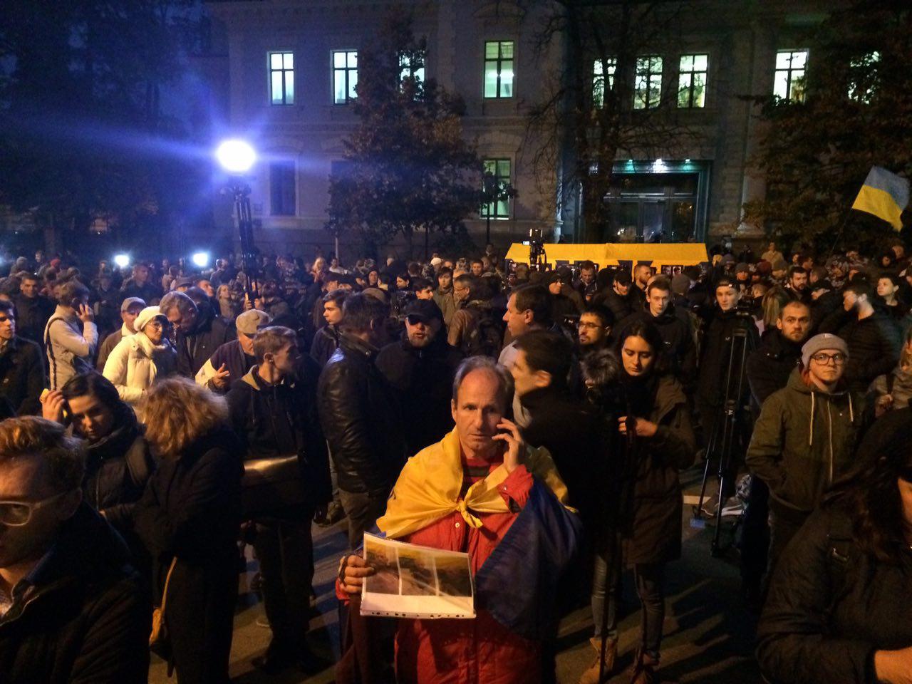 Активисты акцентируют на том, что на эту проблему обратили внимание уже ООН, посольство США в Украины и Европарламент. То есть об этом говорят в мире, но молчат в Украине. В частности, президент Петр Порошенко до сих пор не сделал ни одного заявления по этому поводу. Поэтому активисты и неравнодушные граждане собрались именно под АП - президент является гарантом Конституции.