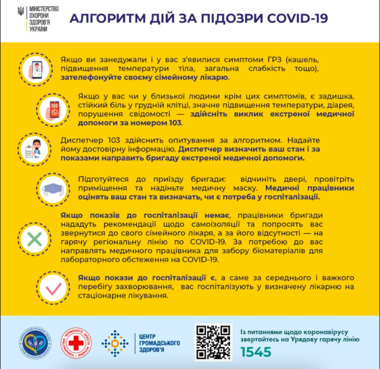 Также можно позвонить в контакт-центр Кабинета министров по телефону 1545, рекомендует Национальная служба здоровья Украины. Оператор горячей линии, на которую вы позвонили, укажет дальнейший алгоритм действий.