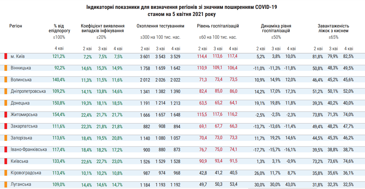 В "красной" зоне продолжают находиться 11 регионов: Киев, Житомирская, Закарпатская, Ивано-Франковская, Киевская, Львовская, Николаевская, Одесская, Сумская, Черновицкая и Черниговская области.