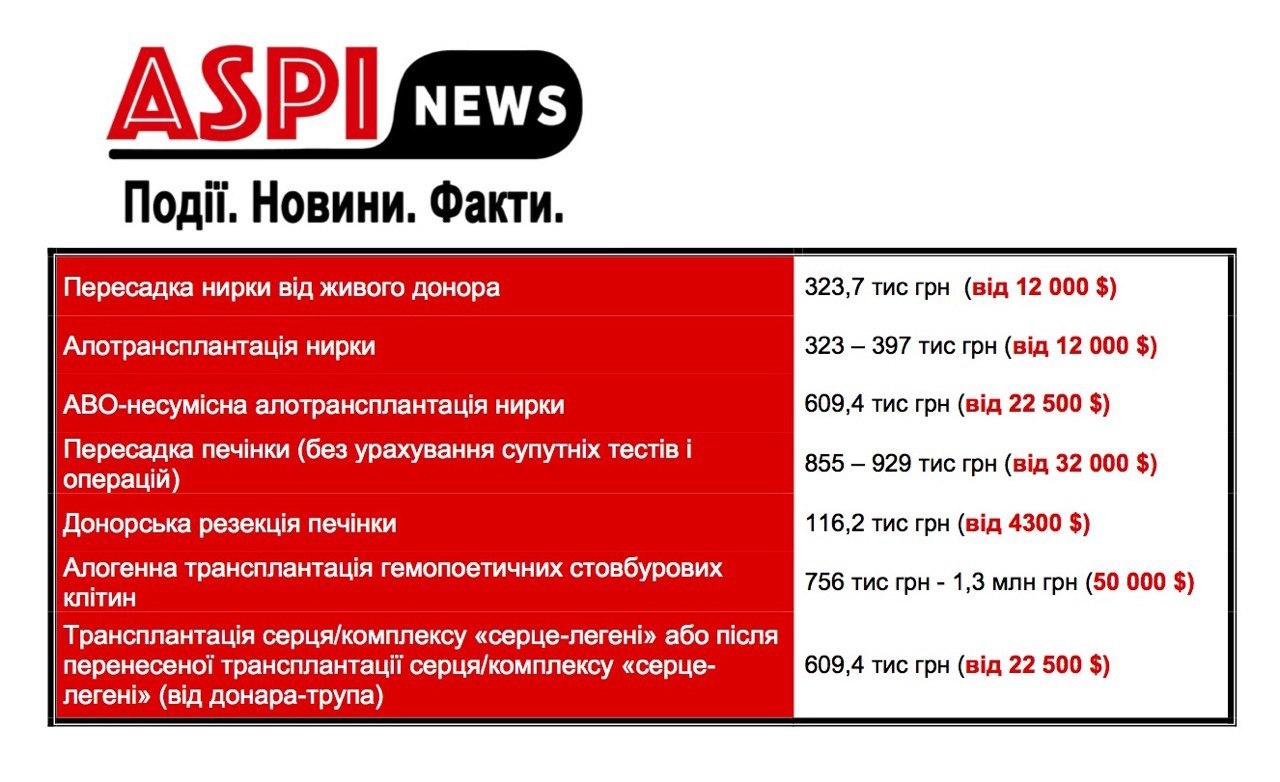 Узнали граждане и о стоимости АВО-несовместимой трансплантации почки. Она установлена на уровне 721 230 гривен.