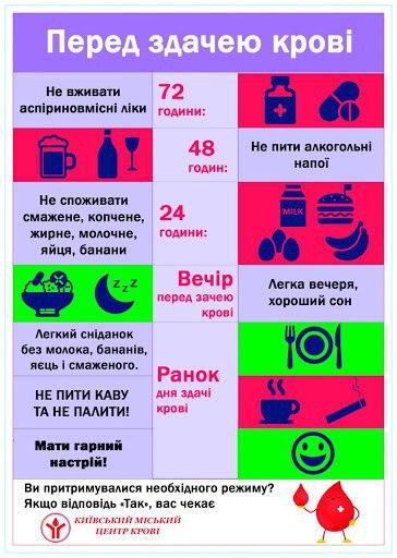 Сдать кровь в Киеве можно с 8:00 до 16:00 по адресам: ул. М. Берлинского, 12, ул. Н. Пимоненко, 8 и ул. П. Запорожца, 26.
