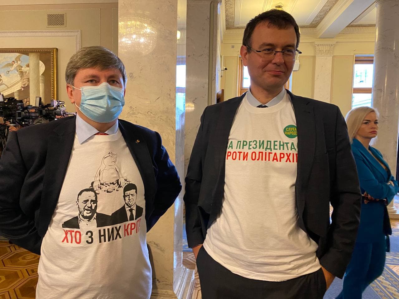 В день выступления президента Украины в Верховной Раде, 1 декабря, между представителями разных фракций состоялась "битва футболок" – "Слуги народа" избрали своим дресс-кодом наряды с надписью "За президента, против олигархов", а депутаты из "Евросолидарности" демонстрировали изображение крота, Зеленского и Ермака с надписью "Кто из них крот?", намекая таким образом на "вагнергейт".