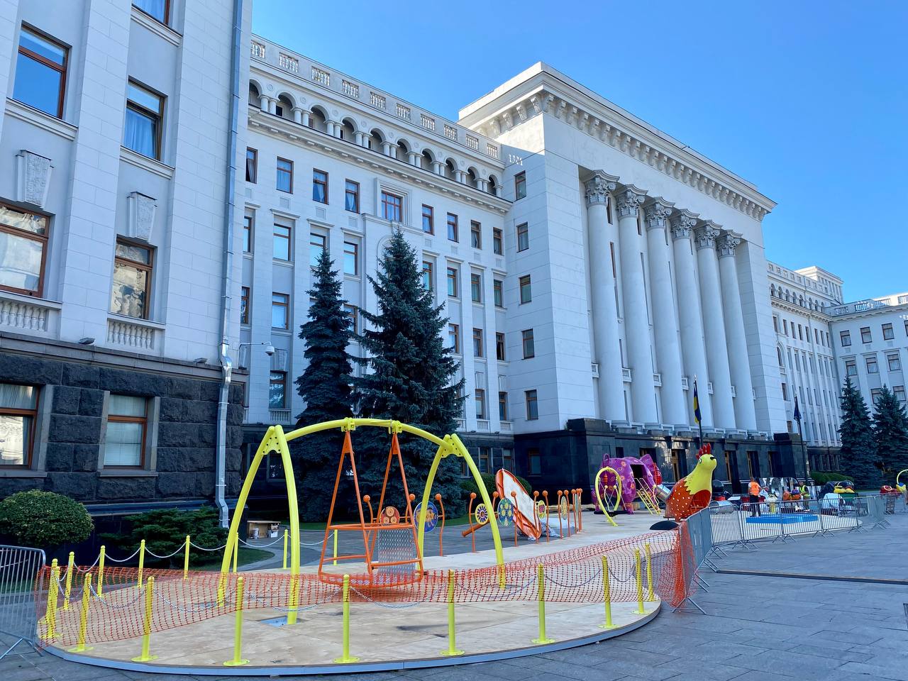 На Банковой подходят к завершению монтажные работы праздничной детской площадки ко Дню Независимости Украины. Журналист агентства ASPI news подготовил фоторепортаж обновленного Офиса президента.